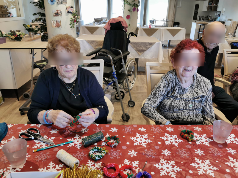 La Villa Charlotte > Actualités > Atelier avec ANNIE Atelier avec ANNIE Publiée le 04/11/2025 Premières lumières de Noël avec Annie à l'Ehpad ! Des mains créatives , des cœurs en fête !