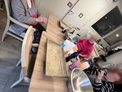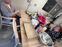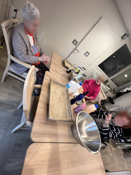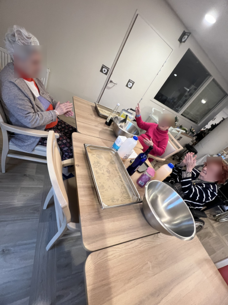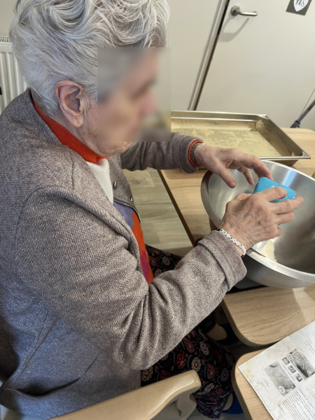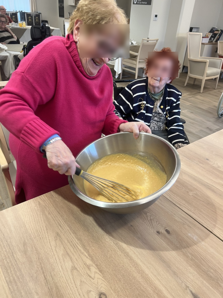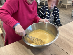 Atelier pâtisserie ce matin au sein de l'EHPAD : réalisation d'un gâteau à la vanille et à la fleur d'oranger .