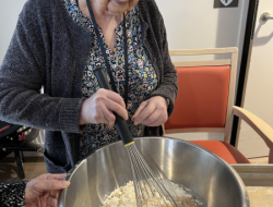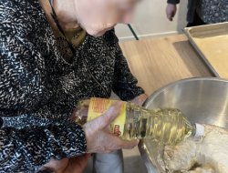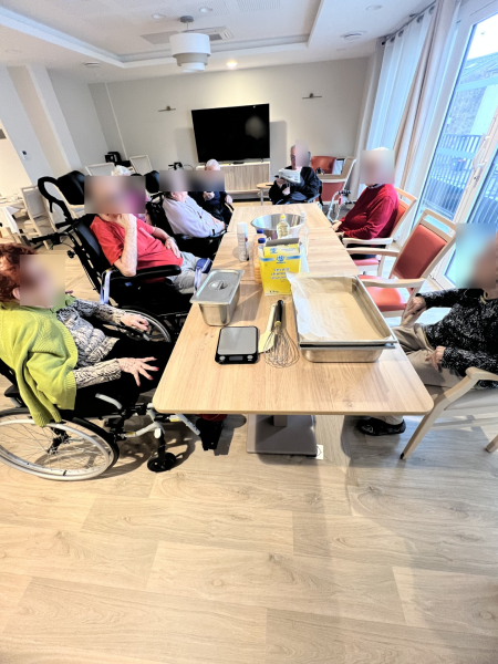 Ce matin , les résidents de l'Ehpad ont préparé ensemble de délicieux gâteaux à l'ananas et à la noix de coco .