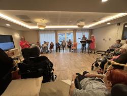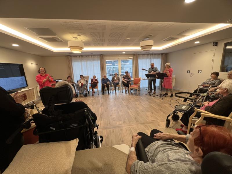 La Villa Charlotte > Actualités > LES BLOUSES ROSES + MARC A LA GUITARE LES BLOUSES ROSES + MARC A LA GUITARE Publiée le 11/12/2025 Nous avons eu la chance d’accueillir au sein de l'Ehpad les blouses roses + Marc à la guitare . Un moment de convivialité tous ensemble !