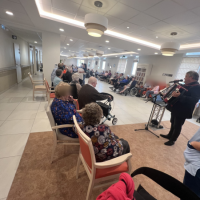 Publiée le 16/10/2025Un bel après-midi en musique à l'Ehpad et les résidents du Pavillon Charlotte . Les résidents ont partagé sourires,chansons et bons moments grâce à la visite chaleureuse des Blouses Roses et au talent de Marc à la guitare . Une parenthèse pleine de douceur et de convivialité ! Lire la suite