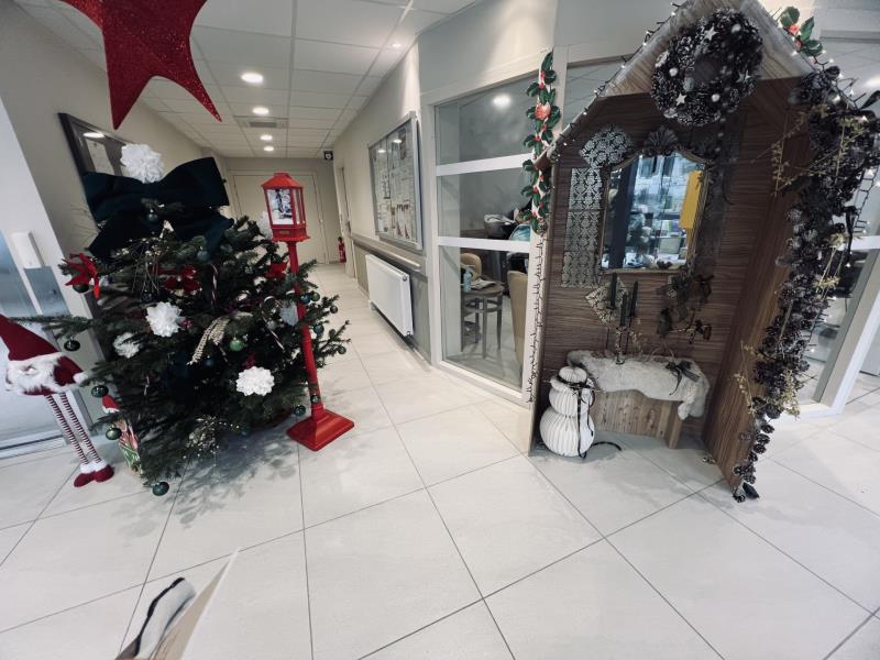 Les décorations de Noël illuminent l'espace et apportent une ambiance chaleureuse et féerique .